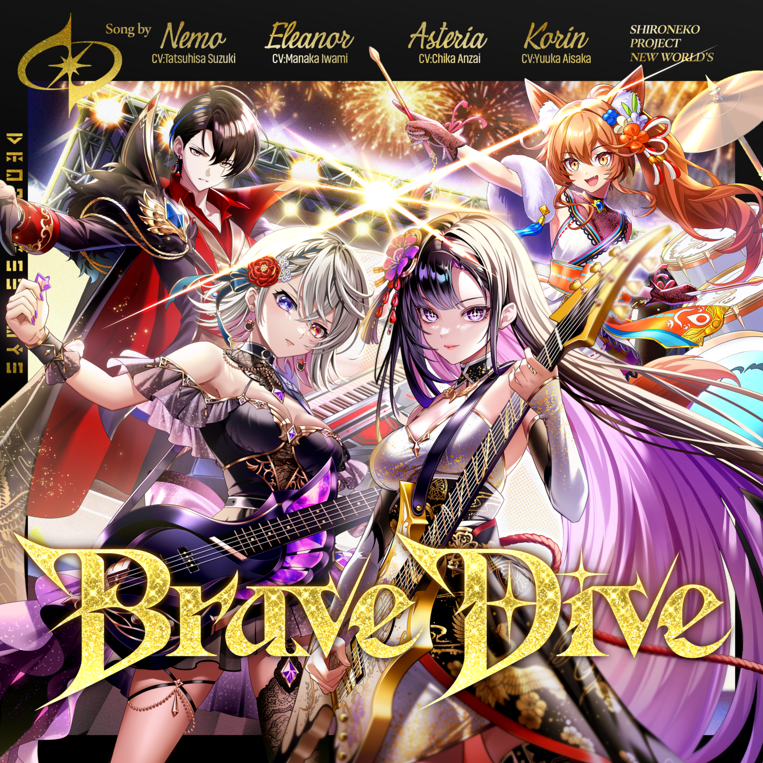 Brave Dive / Asteria (CV: Chika Anzai), Eleanor (CV: Manaka Iwami), Korin (CV: Yuuka Aisaka), Nemo (CV: Tatsuhisa Suzuki)Brave Dive / アステリア (CV:安済知佳), エレノア (CV:石見舞菜香), コリン (CV:相坂優歌), ネモ (CV:鈴木達央)Brave Dive / Asteria (CV: Chika Anzai), Eleanor (CV: Manaka Iwami), Korin (CV: Yuuka Aisaka), Nemo (CV: Tatsuhisa Suzuki)